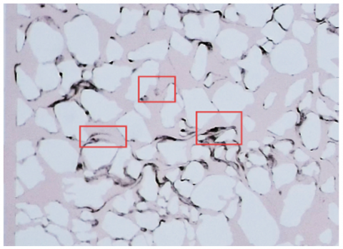 (2) 2000 Mesh Medium Particles (2.987 μm): These particles exhibit dynamic migration-retention equilibrium characteristics. With improved compatibility between particle size and pore throat, some particles can break through the front filtration zone and migrate further into the system, as shown in Figure 6(b). In this process, particles form multi-particle cooperative bridges at constriction points in the pore throats due to the combined effects of electrostatic forces and fluid shear forces. Over time, deep clogging develops in the porous medium. This clogging mode is spatially expansive, causing simultaneous pore blockage in different sections of the filtration system.