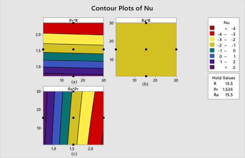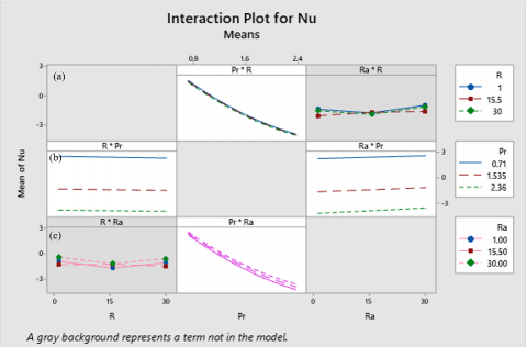 The Interface plots for Nu exposed in Figures 24 (a)-(c), existing these contact diagrams can demonstrate if interaction effects refer to the mutual influence of two or more influences on a response variable, which differs from the effect of each factor individually.