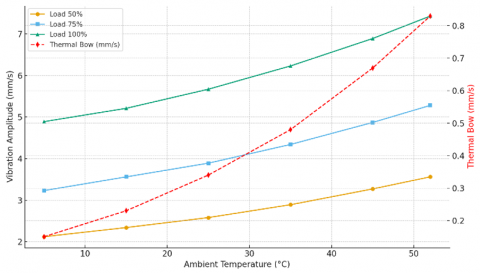 For instance, in hot climates such as those in Iraq, ambient temperatures in the summer months can exceed 50 ℃, which contributes to significant drops of power and displacement amplitude (vibration) as a result of temperature expansion.