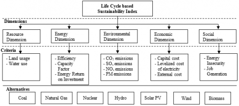 There are three major steps for estimation of sustainability index for any energy system as described by Wang et al. [11]. These three steps are selection of criteria, assigning weights to the criteria and evaluation of criteria. In this study, LCA is integrated in the method for quantification of these criteria. The following are the steps used to estimate the SI of coal power plants.