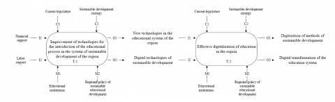 In this case, the best option would be to use a popular graphical system description language (in our case, a digital transformation system for the sustainable development of the region), which, based on structural analysis and design, can form a set of interconnected functional blocks. In a wide scientific and practical circle, it is called the modeling of the functional elements of a process.