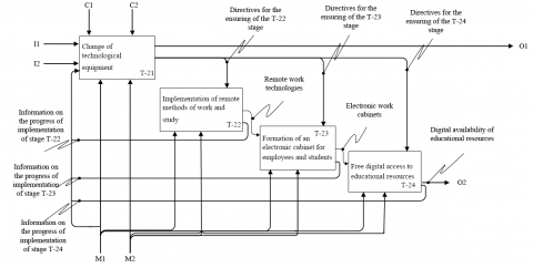 T-14. Implementation of digital technologies for ensuring the activities of higher education. This technology is based on tools aimed at achieving the goal of digital transformation - maximum provision of information needs of higher education institutions. To achieve this goal, it is necessary to direct the tools of digital transformation described above to solving the problems of information support for the activities of the institution of higher education and sustainable development. Essentially, the tools for managing information and solving functional problems should not only fill information bases with data that are input or output for these technologies, but also with information that is a resource for employees in production or management activities. This is an additional task of digital transformation, which relies on information technology to support activities.