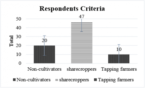 Based on the results of interviews and questionnaire results in The Special Purpose Forest Area of Mount Bromo that farmers are divided into non-cultivators, sharecroppers and tapping farmers. Sharecroppers are farmers who work or work on other people's land. Non-cultivators are farmers who do not cultivate or work on other people's land but work on their own land. Respondent criteria are presented in Figure 3.