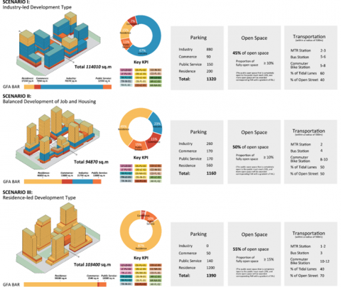 Hong Kong has achieved miraculous growth through compact, mixed-use, and transit-oriented development. Building upon the tenet of "sustainable development", this study aims to extract the benefits of land use forms in Hong Kong and Shenzhen, strategically and spatially integrating them to optimize the job-housing balance index. Therefore, key controls of land use and function adaptability include the mixed proportion and development intensification.