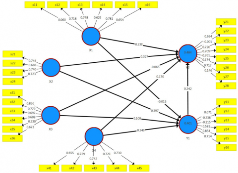 The research was conducted in three stages, namely: 1) the first stage was a survey to collect respondent data; 2) the second stage, namely the focus group discussion (FGD) to confirm the outcomes of the PLS-SEM analysis with conditions in the field; and 3) the third stage is filling out the MICMAC questionnaire by stakeholders.