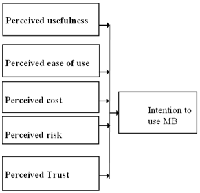 PEoU has been shown to affect PU [10]. According to this theory, PU as well as PEoU are crucial factors in determining whether to embrace and utilise it. As a result, several studies on MB adoption include additional factors, such as perceived cost of use, perceived risk, compatibility with lifestyle [10].