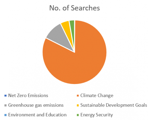 The chart in Figure 1 shows the distribution of the literature in the form of documents available in the Scopus database for the different but related keywords. In consonance with the SDGs and objectives in the Paris Agreement, keywords like NZEs, Climate Change and SDGs are essential [9]. The Figure 1 shows that most documents are available for the keyword "Climate Change" followed by energy security—the least number of documents available for the conjoint keyword of Environment and Education.