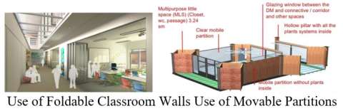 In the short term, flexibility at the level of interior spaces allows for the accommodation of different activities through the use of partitions and movable walls in response to the demands of learning methods. This enables the space to become larger, smaller, or configured differently, involving changes in structure or technical systems but not in the built framework [7].
