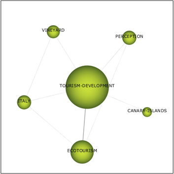 Finally, in the Figure 20, it is suggest that tourism-development are interconnected with vineyard, consumer-behaviour and perception. It have a light connection with volcanic. Perception plays a key role in the success of these initiatives, and understanding consumer behavior is key to designing sustainable tourism development strategies.
