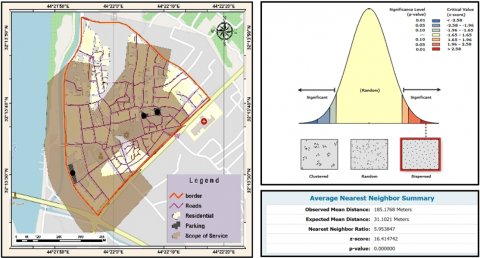 Averaged Nearest Neighbor Index in GIS to determine the distribution pattern of parking lots and analyze the service area |