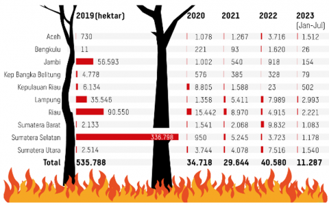 Figure 2. Area of forest and land fires in Sumatra 2019-2023