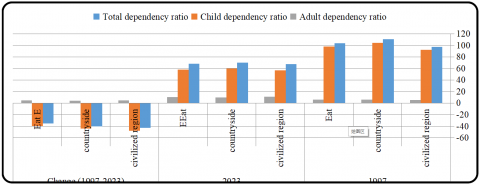 Table 2. Dependency ratio for children, adults, and college for the years 1997 and 2023