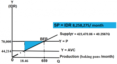 To determine the Total Variable Cost, Total Fixed Cost, Average Variable Cost, breakeven point of production (BEPq), and producer surplus the author used the R-Studio application.
