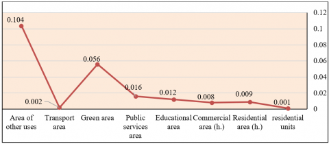 Commercial buildings on key highways have increased in quantity when comparing the designs from 2000 and 2023, as seen in Figure 7 and the accompanying Table 2. Additional service and educational facilities will also be included in the new concept. However, as the number of cities continues to rise, fewer open and green areas will remain. There has been a noticeable increase in residential construction and population density, possibly driven by growing demand for homes in the area. Accordingly, the re-subdivision rate in the area hit around 31.58% (Figures 8 and 9).