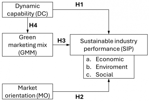 Despite growing interest in sustainability within cultural and creative industries, existing studies tend to examine DC, MO, and green marketing in isolation, leaving a limited understanding of how these constructs interact to shape sustainability outcomes in heritage-based sectors like batik. Prior research has also been dominated by manufacturing or service contexts, resulting in theoretical frameworks that may not fully capture the cultural, artisanal, and resource-constrained nature of traditional craft industries. Therefore, a conceptual gap remains regarding how DC and MO jointly stimulate environmentally oriented marketing practices and influence multidimensional sustainability performance. Addressing this gap is crucial for advancing theory and providing evidence specific to cultural industries operating in emerging economies.