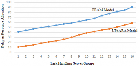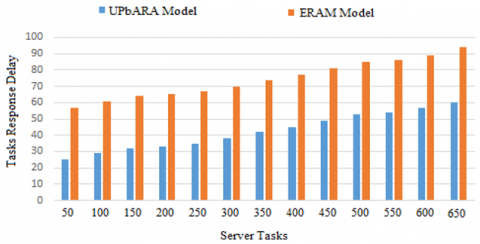The proposed model efficiently schedules the provision of cloud services. The new model has the advantage of low reaction time relative to the old one. As shown in Figure 14, the response delay for some tasks varies.