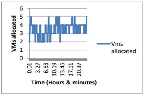 The cloud user after authorization, resource requests should be placed to access cloud resources. The VMs are used for allocating the resources and processing user tasks with the allocated resources. The resources are allocated based on the priority of users and the tasks are processed accordingly. The VMs processing time intervals are indicated in Figure 6.