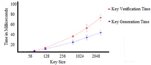 The proposed model considers the key generation and verification time levels for performing encryption and decryption of data. The key generation and verification time levels are indicated in Table 2.