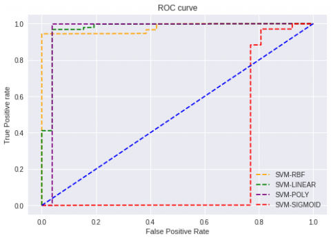 Figure 10. ROC curves of the SVM classifier kernels with TCP un-correlated features on customized dataset