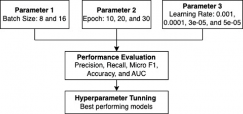 In this study, we conduct experiments to evaluate the performance of our proposed model under different configurations. The main objective is to fine-tune the model's hyperparameters to maximize the classification accuracy for toxic speech detection. This study employs two scenarios to measure and identify the optimal model: evaluating the impact of data on overall evaluation metrics and selecting the best model parameters (Figure 4).