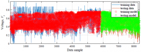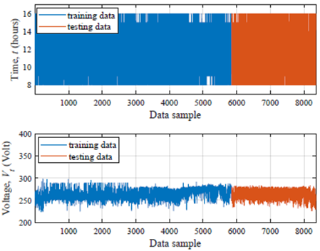 Voltage measurement data is graphed based on time. The measurement data is also carried out by separating outliers using a box plot. The data is divided into two parts, namely training data and test data with a ratio of 70:30. The training data is used to obtain the weight and bias values of the ANN model and the test data is used to test the ANN model obtained previously.