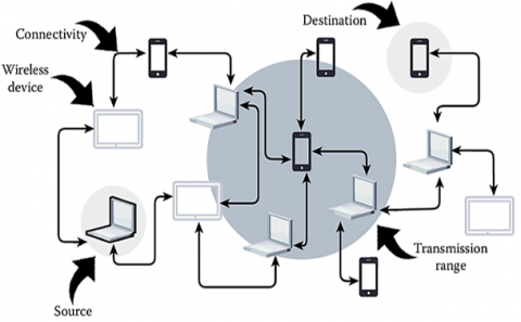 ·Protocols for Ad-Hoc routing allow mobile nodes to communicate with one another. These protocols allow mobile nodes to dynamically create communication links without relying on a permanent infrastructure [7].