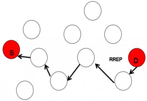 Reactive routing. Source routing with a complete route included in the packet header. Adapts to dynamic topology changes. |