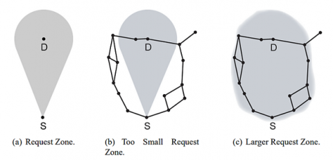 ·Route Discovery Time: The time taken to discover a route. LAR can decrease route discovery time by constraining the look zone for a modern course to the anticipated region around the destination's final known location [36].