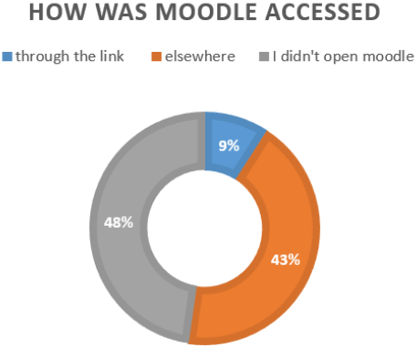 Figure 10 depicts the percentage of attempts made by Engineering students at the 500 level to access the Moodle platform after their awareness of a phishing email. 9% of students attempted to access the Moodle platform by clicking the hyperlink in the phishing email. Conversely, 48% of students refrained from attempting to access the Moodle platform altogether. Additionally, 43% of students opted to access the Moodle platform through alternative means, such as manually searching for the original Moodle link via a web browser.