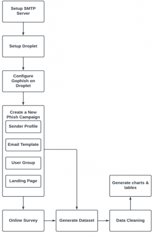 This section presents the methodology for configuring and analyzing a phishing framework to evaluate the vulnerability and awareness of 500 level engineering students in Covenant University to a phishing attack. Figure 1 depicts the research methodology conceptual framework. The rest subsections follow the outline of the Figure 1 sequentially.