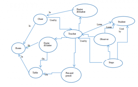 A contextual knowledge graph for human activities and their complex relationships and dependencies in a class room scenario is shown in Figure 5 and it is explained with knowledge vertices, edges and its relationship such as spatial, observational and actions.