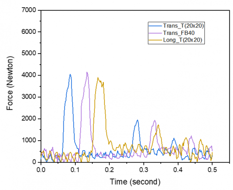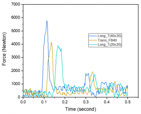 Figure 16. Reaction force for all the specimen on drop test experiment
