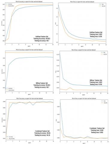 Figure 5. Performance analysis of the proposed pipeline in terms of the accuracy and loss, considering varied features
