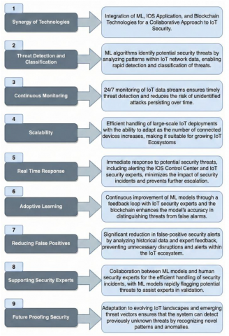 Table 2. Key blockchain contributions to integrity, trust, and automated response in the IoT security framework