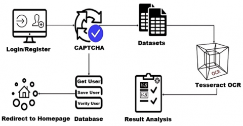 This ensures that the CAPTCHA remains user-friendly while maintaining its effectiveness in preventing automated logins. Registration Page Module is designed to facilitate the account creation process for new users. It displays the registration page with input fields for a username, email address, password, and password confirmation. This module ensures that all required information is collected in a structured manner. Additionally, it performs validations to confirm that the passwords match, enhancing the accuracy and security of the registration process. Together, these modules work seamlessly to provide a secure and user-friendly authentication system for the application, ensuring that only authorized users can access the system while preventing unauthorized access through automated scripts. The Captcha Evaluation Module is designed to assess the robustness and effectiveness of the CAPTCHA system integrated within the application. This module generates multiple CAPTCHA images and subjects them to OCR based testing, simulating potential automated attacks. By analyzing the success rates of these OCR attempts, the module helps identify any weaknesses in the CAPTCHA design. This iterative testing process involves generating CAPTCHA images, applying OCR tools, and analyzing the results to continuously refine and enhance the CAPTCHA system. This ensures that the CAPTCHA remains resilient against sophisticated automated attacks, providing a reliable defense mechanism for the application's authentication system. In situations of low band width at the use end the proposed model may induce some delay and unrest to the users.