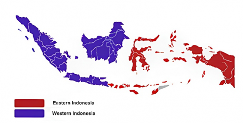 Figure 1. Map illustration showing the division of western and eastern regions of Indonesia