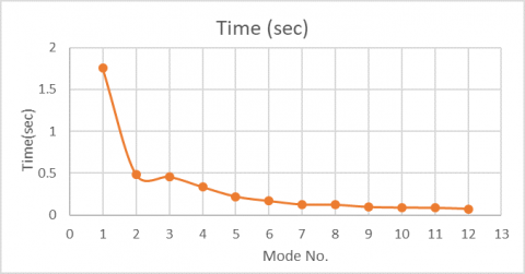 Figure 16. The relationship between time and mode number for steel I-girder bridge span