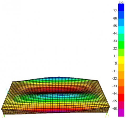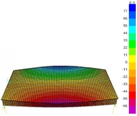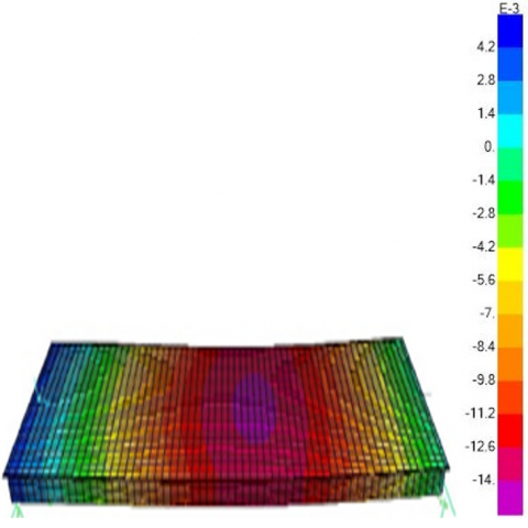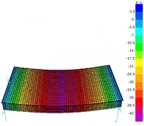 Figure 10. Viewing of vertical deflection in downward direction due to vehicle live load case