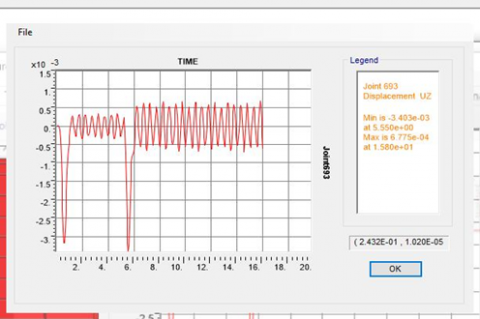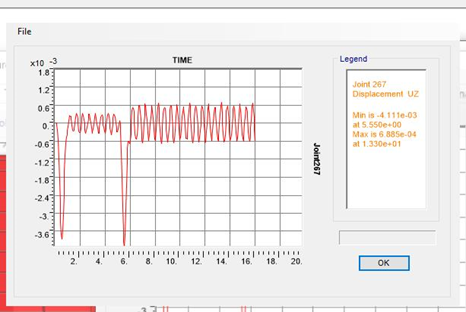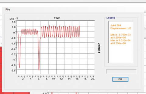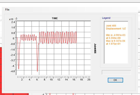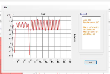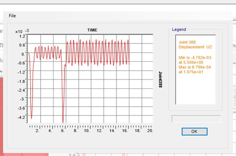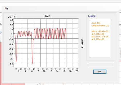 Figure 20. Curves of CSI-bridge for dynamic displacement for steel I-girder span under effect of vehicle live load