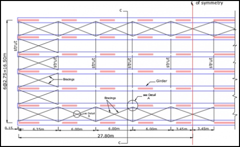 Constructed as concrete bridges because the superstructure constitutes a minor portion of the overall construction work for the primary contractor, who typically manages concrete foundations, piers, and abutments. The concepts of composite bridges encompass a span range of approximately 15m to 50m to connect the conventional span lengths of composite bridges-within that range, they address roughly 75% of all span requirements for road bridges. Simply supported structures are normally employed for single, short-span constructions. Multiple-span steel girder structures are engineered as continuous spans. When the total length of the continuous structure surpasses about 900', a transverse expansion joint is implemented using girder hinges and a modular watertight expansion device [27-32].