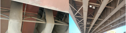 (1) The damage evaluation results of the steel I-girder span indicated that there are no significant damages in the structural components of the span. Steel I-girders span displays no indications of rust or corrosion. The obstruction needs to be eliminated, and the rainfall drainage system requires repair. Additionally, it would be prudent to apply a moisture-resistant coating to the steel I-girders. It can also be observed that the damage inspection revealed that the primary concern lies within the expansion joints, which require either repair or replacement.