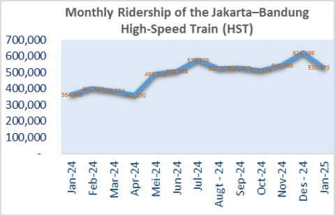 Figure 1. Monthly Jakarta-Bandung HST ridership (Jan. 2024–Jan. 2025)