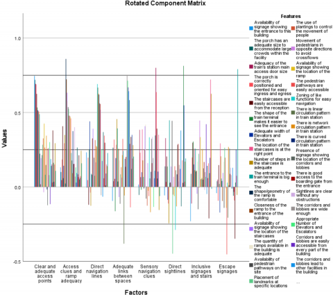 Table 4 illustrates that of all the forty assessed pedestrian circulation strategies, the adequacy of the train station’s main access door size has the most significant influence on the overall user experience (Beta Coefficient = 0.623). Eleven (11) other strategies, such as availability of signage showing the building’s entrance, adequacy of the train’s main access door size, good access to the boarding gate from the entrance, right location of the entrance to the train terminal and adequate number of staircase steps significantly influence the overall user experience of pedestrians within train terminals.
