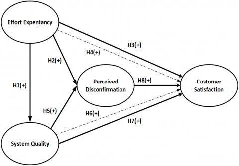 System quality has a positive effect on customer satisfaction mediated by perceived Disconfirmation. |