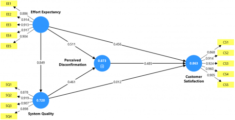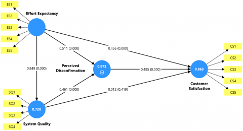 Effort expectancy (EE) refers to the degree of ease associated with using a technology or system [15]. In digital public services, ease of use is particularly influential in shaping perceptions of System Quality (SQ). When a system is intuitive, users are more likely to interpret its design, reliability, and overall performance positively. Prior studies on e-services and mobile platforms have consistently shown that high effort expectancy contributes to higher perceived system quality, which in turn leads to greater customer satisfaction [15, 23]. This relationship can also be understood through the EDM, which assumes a correlation between expectations and perceived performance, even though the direction of causality remains undefined. Both constructs are viewed as exogenous, existing prior to the disconfirmation process [19]. According to Morgeson [17], in alignment with the American Customer Satisfaction Index (ACSI) model, expectations are expected to have a positive influence on perceived quality due to limited user engagement or awareness, which restricts objective performance evaluation, or because individuals cognitively align their satisfaction with prior expectations to reduce dissonance [24]. Thus, when systems are perceived as easy to use (high EE), users may interpret this not only as a sign of good usability but also as a fulfillment or even exceedance of their expectations, reinforcing their perception of system quality.