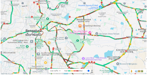 Figure 1. Heavy traffic (dark red spot) in Bengaluru cities