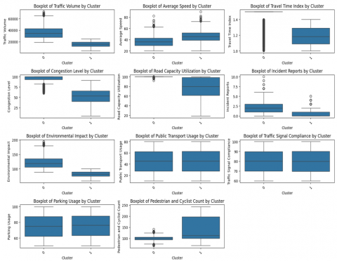 Figure 5. Cluster-based traffic volumes, speeds, congestion levels, incidents, environmental impacts, and traffic signal compliance