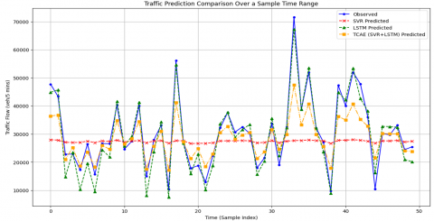 Traffic flow forecasting is vital for smart transportation systems and traffic management. This work fully analyzes deep learning algorithms for traffic forecasting systems that use various assessment metrics [22]. This paper proposed real-time event-driven road traffic monitoring using CCTV video, accident and non-accident classification using the YOLO model, and event summarization using the DCNN model, providing 82.3% accuracy on test data, reaching 56.7% due to insufficient dataset availability [23]. Traffic congestion forecasts play an important role in future decision-making. This study focuses on traffic congestion and considers meteorological conditions, temperature, and humidity. The author presents a deep learning model and assesses it in the New Delhi traffic conditions, achieving an average RMSE of 1.12 [24, 25].