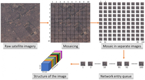 Indeed, to overcome the processing complexity problem due to the volumetry of the images because of their size and the multiplicity of bands, this study proposes to exploit the mosaic functionality to split them into scenes relative to the tiles that constitute them while preserving and taking into account the spatial dependencies between them. An additional phase has been added to the network to have a training dataset consisting of a sequence of images (scenes) in a grid that takes into account their spatial positions.