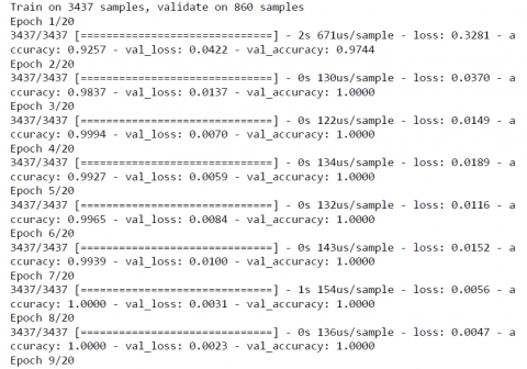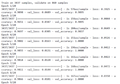 When model is executed then training and validation accuracy and loss obtained in each epoch is displayed in Figure 4. Accuracy of 1.0 is obtained with loss of 0.00014826182060925593.